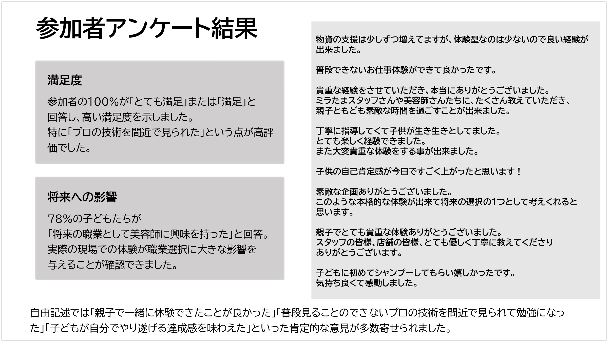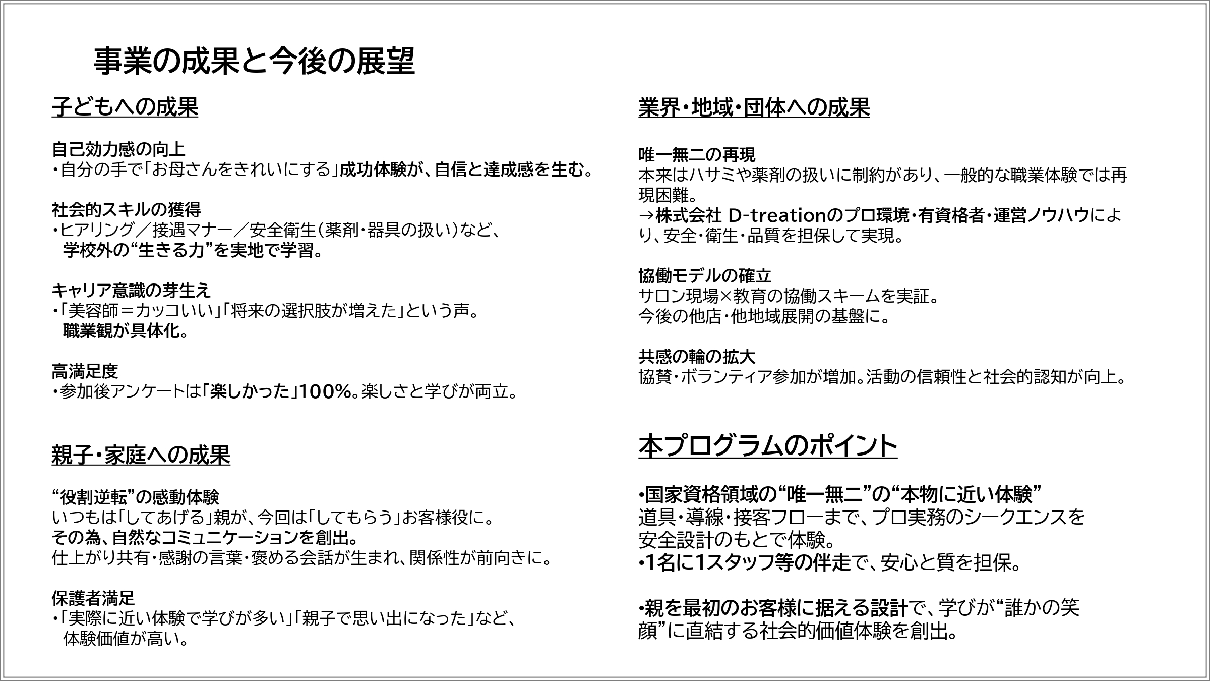 他では体験できない「本物の美容師体験」を子ども達に提供させて頂きました。