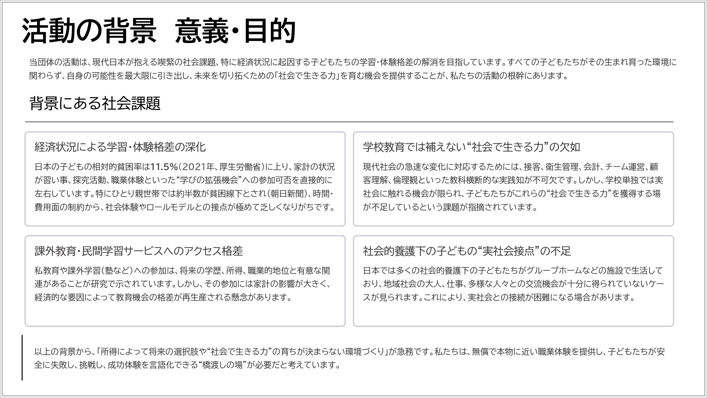私たちミラたまが子ども達に「教育・体験」を支援する理由