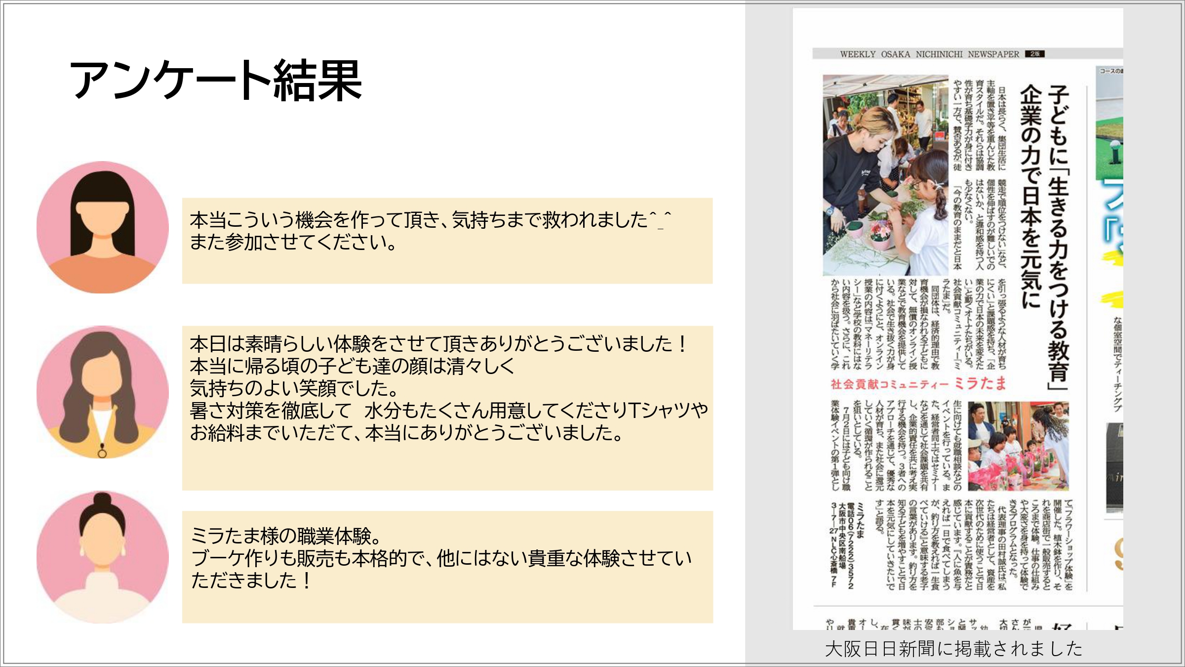 お子様の親御様からご回答いただいているアンケートでも、参加型のイベントの開催を楽しみにされる声や、お金のことを学ぶ機会を持てることへ期待するコメントをいただきました。